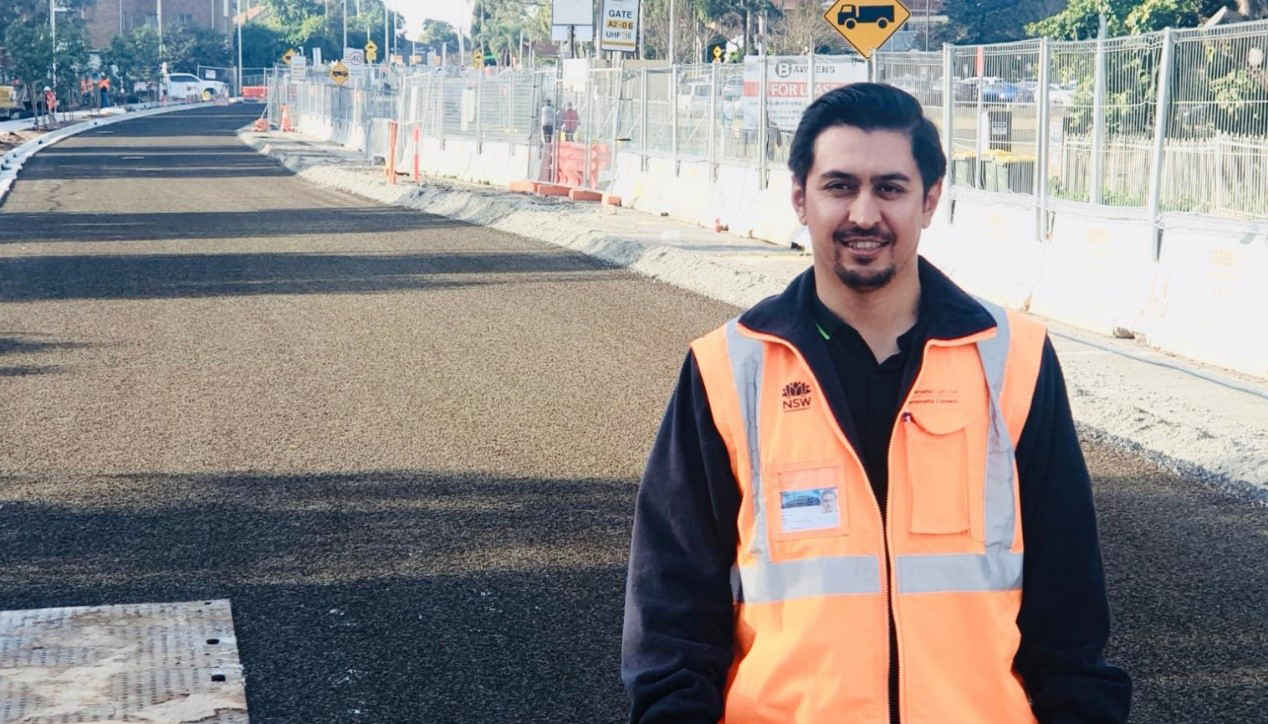 While he was at university, a friend suggested he speak to CareerSeekers, a non-profit organisation helping refugees enter professional careers. Through CareerSeekers, he landed an internship at Downer, working on the Berry to Bomaderry Princes Highway upgrade project. After two internships on that project, he secured a place in Downer’s Graduate Program at the start of 2021, and is now working as a Site Engineer on the Parramatta Light Rail (Stage 1) project.